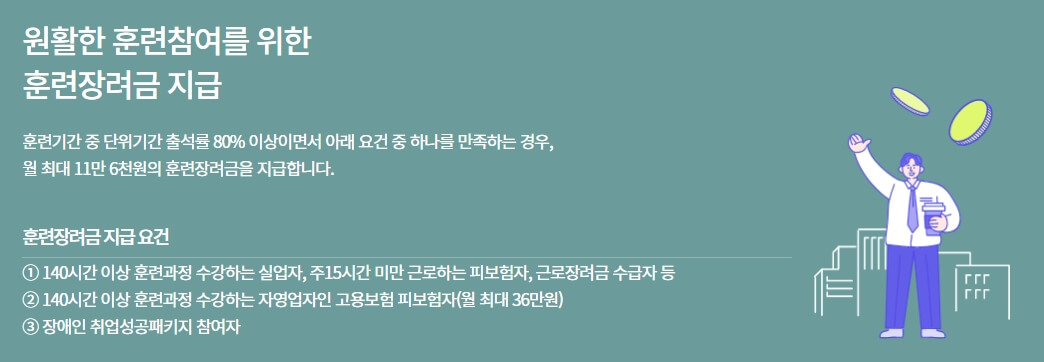 ③ 원활한 훈련참여를 위한 훈련장려금을 지급합니다.(월 최대 11만 6천 원)