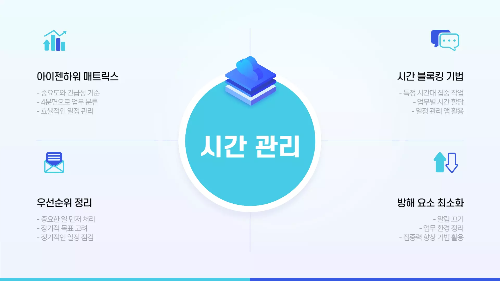 ✅ 시간 블록킹 기법: 하루 일정을 미리 계획하고 방해 요소를 최소화하세요.