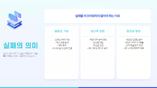 실패를 단순한 좌절로 여기지 말고, 배움의 기회로 삼아야 합니다. 실패를 경험할 때마다 무엇이 잘못되었는지 분석하고 개선할 수 있다면, 다음 도전에서는 더 나은 결과를 얻을 수 있습니다.
