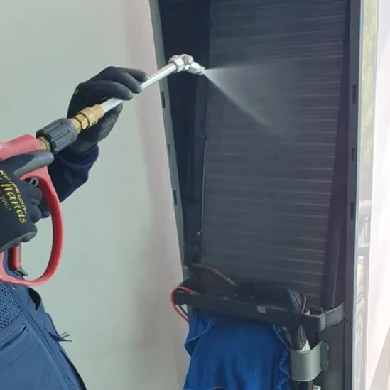 실외기 그릴을 열어 내부의 먼지와 오염물질을 청소기로 흡입하거나 물로 씻어내야 합니다. 실외기 팬 날개 사이의 먼지도 깨끗이 제거해야 합니다.
