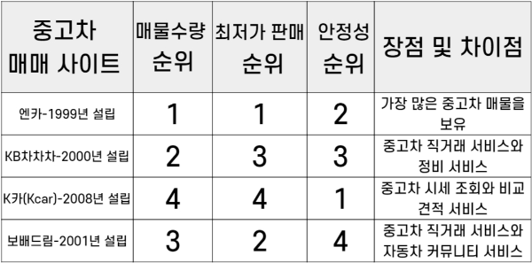 중고차 매매사이트 순위(매물수량, 최저가판매, 안정성) - 2022년 기준