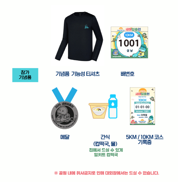참가자에게는 기념 티셔츠와 메달, 떡국 밀키트가 제공됩니다.