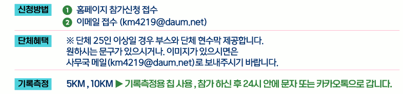 • 대회코스 5km, 10km 중 참가할 코스를 선택합니다.